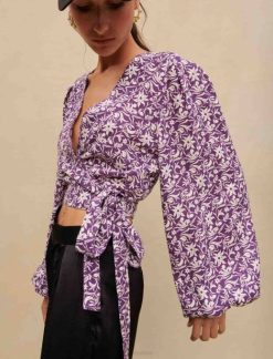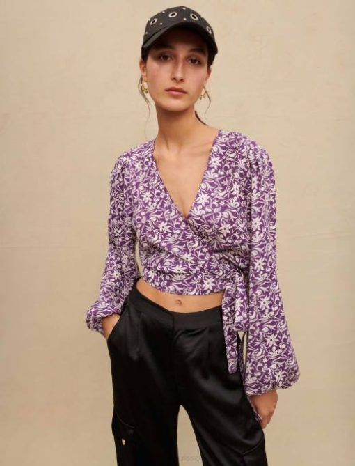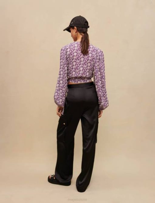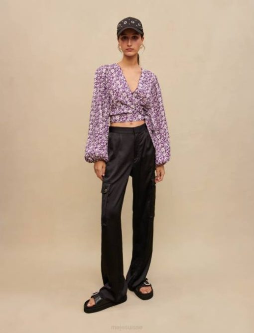 cette blouse portefeuille à manches longues volumineuses et liens à la taille arbore un imprimé fleuri et peut être associée à un pantalon cargo pour pimenter le look