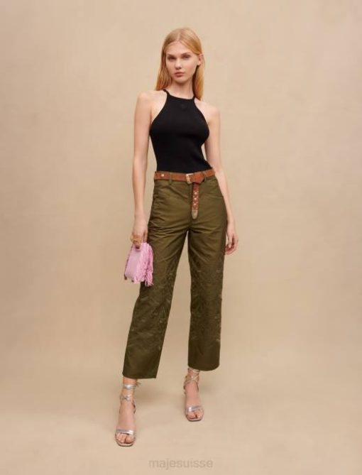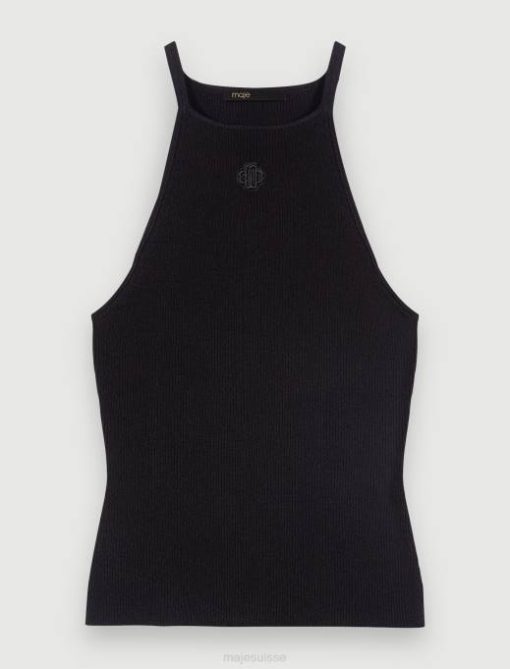 vêtements H60447 noir femmes pantalon en maille côtelée Maje