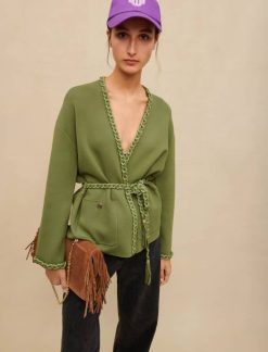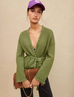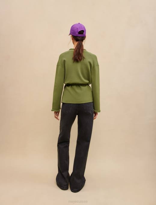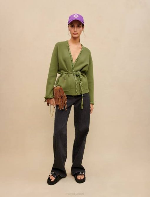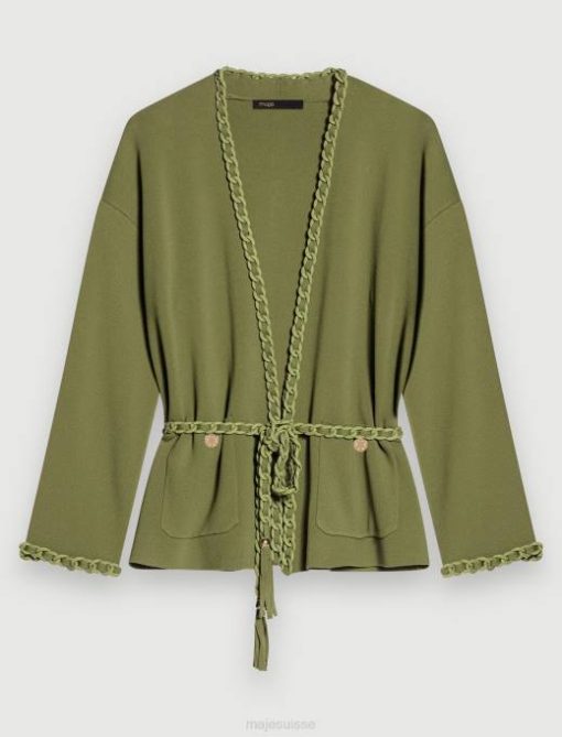 vêtements H604291 kaki femmes cardigan avec bordure tressée Maje