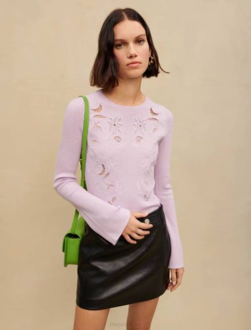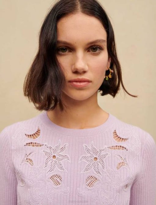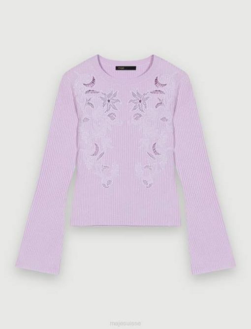 vêtements H604292 violette de Parme femmes pull à motifs ajourés Maje