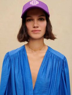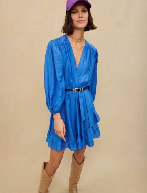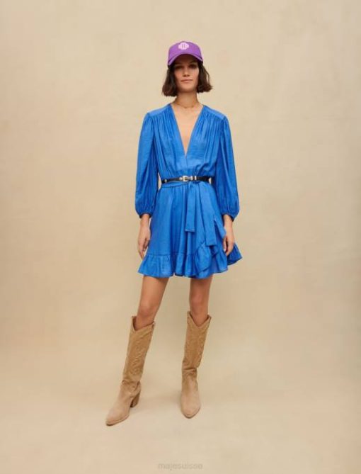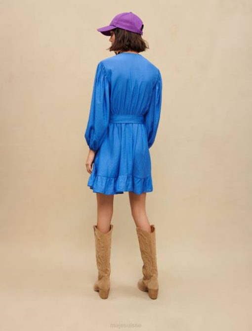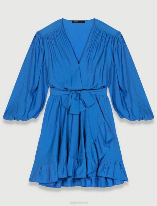 vêtements H604301 bleu femmes robe courte à volants Maje