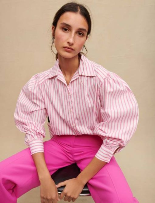 vêtements H604306 rose femmes chemise volumineuse à rayures Maje