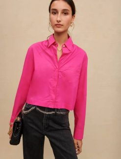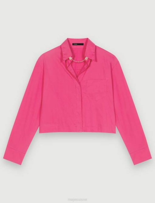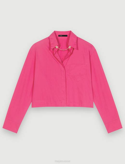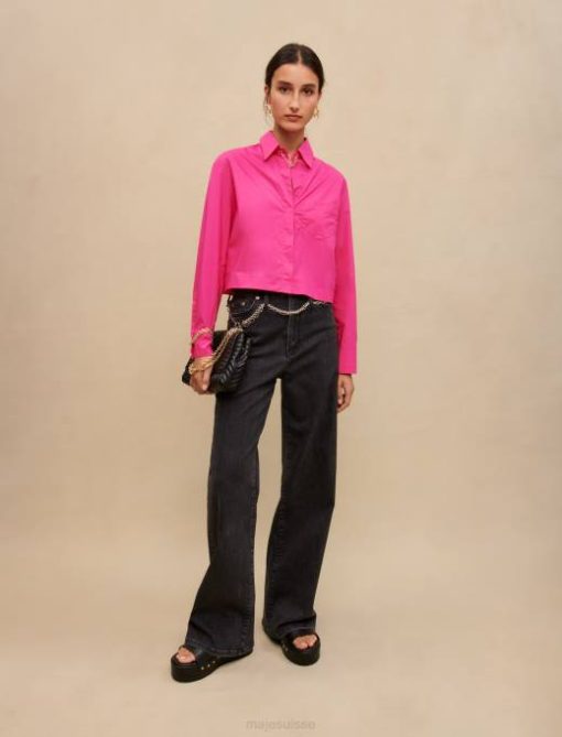 maje revisite les essentiels du vestiaire en les revisitant avec modernité. cette chemise oversize en coton présente une coupe raccourcie, l’occasion pour vous de jouer avec les volumes et les longueurs. il a des manches longues et une patte de boutonnage recouverte. portez-le avec du denim et des accessoires roses, couleur phare de cette saison.