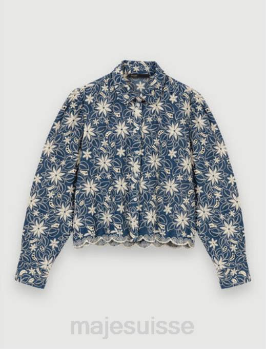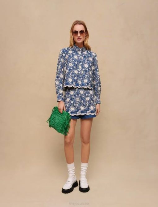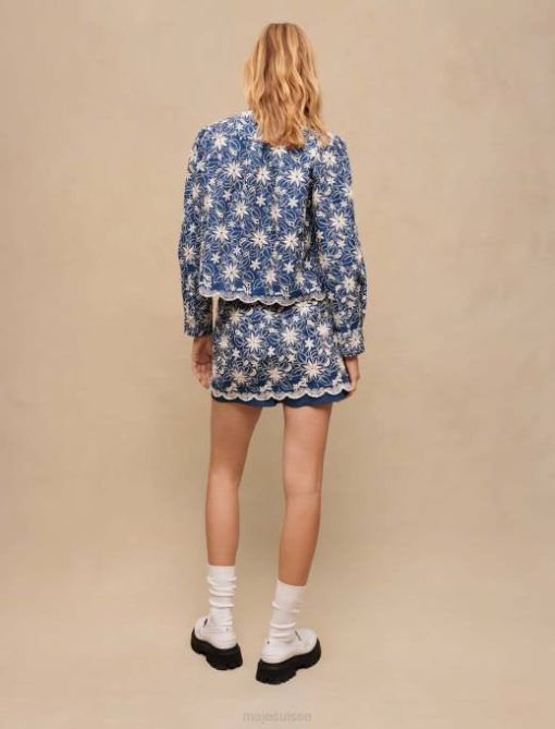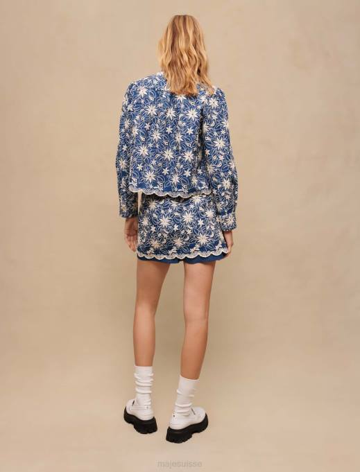 vêtements H604310 bleu femmes veste courte brodée Maje