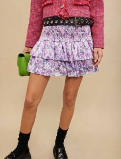 cet imprimé floral frais et pétillant aux tons pastel est un incontournable de la nouvelle collection Maje. Délicatement smockée à la taille, cette jupe courte et légère se pare de volants aériens.