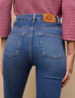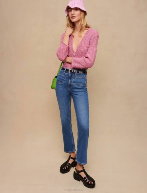 vêtements H604121 bleu femmes jean avec détails tressés Maje