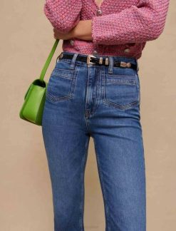 incontournable quelle que soit la saison, ce jean légèrement délavé présente une coupe droite et une taille mi-haute. les poches plaquées sont pointues.