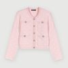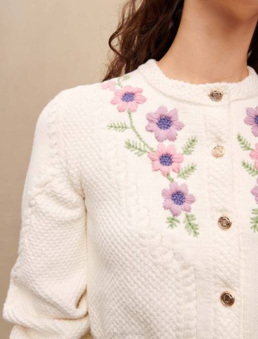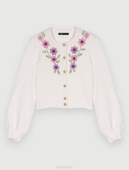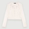 vêtements H604325 écru femmes cardigan court à fleurs brodées Maje