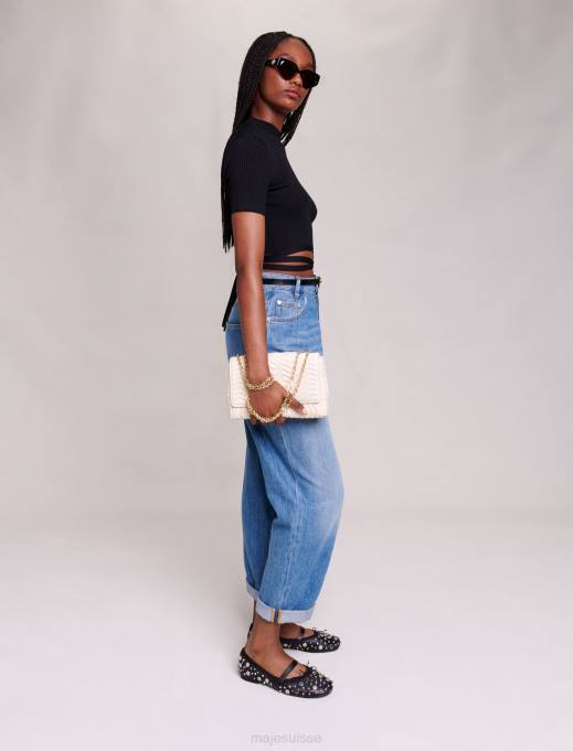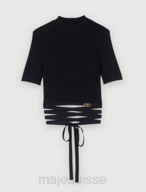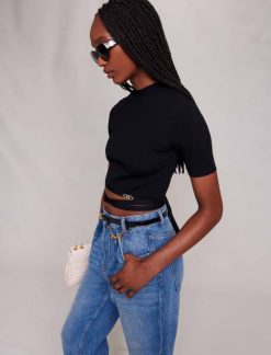 ce haut court reçoit une touche moderne avec des bandes entrecroisées. agrémenté d’une breloque trèfle, ce haut court possède un col légèrement montant et des manches courtes. des bandes ludiques révèlent la peau.