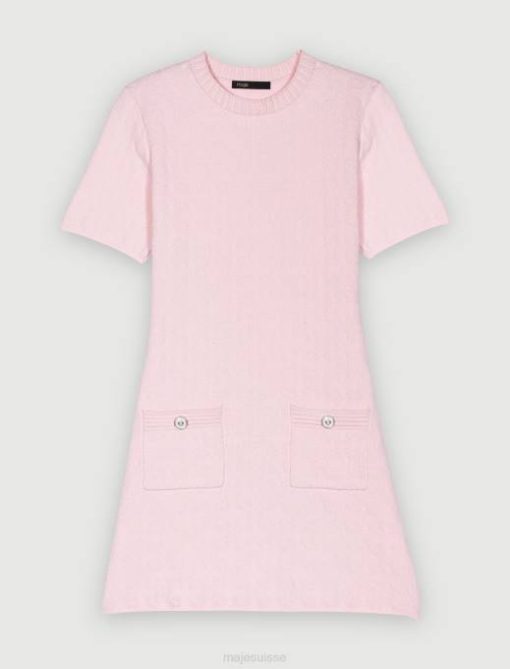 vêtements H604332 rose femmes robe en maille texturée Maje