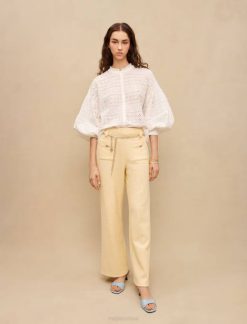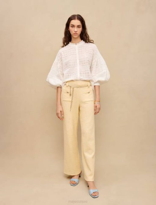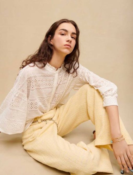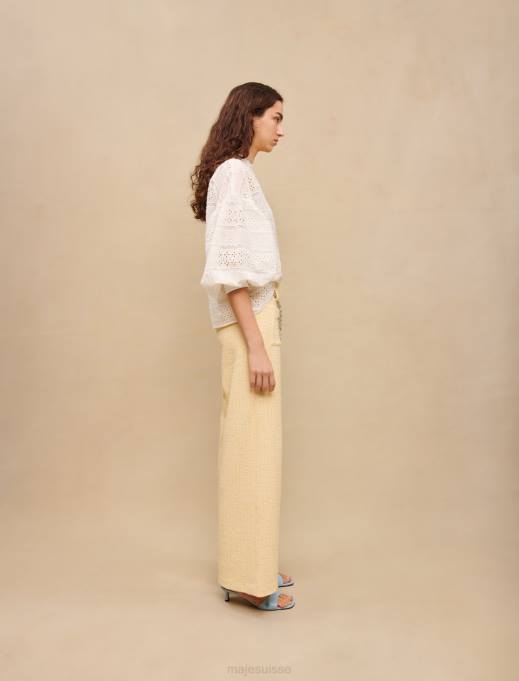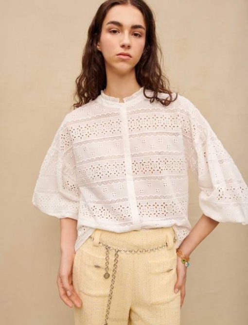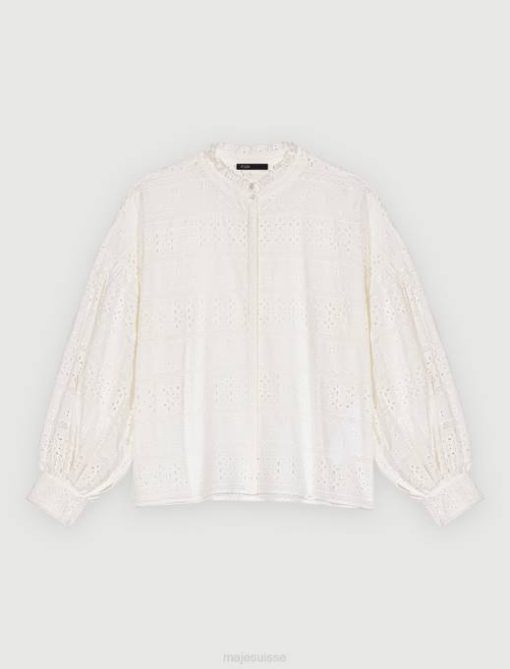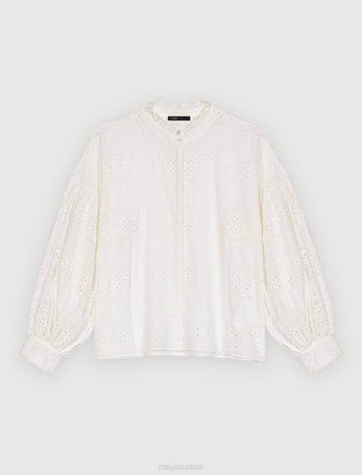 vêtements H604341 blanc femmes blouse en coton blanc brodé Maje