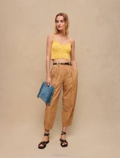 vêtements H604118 marine femmes pantalon large taille haute Maje