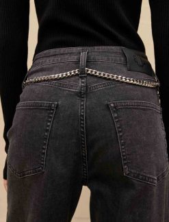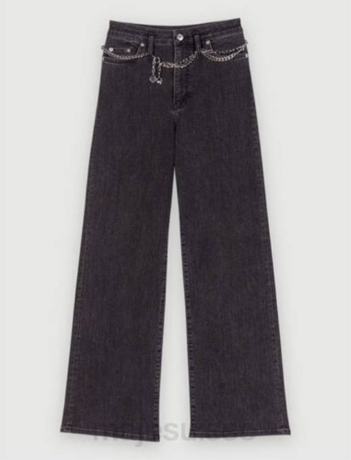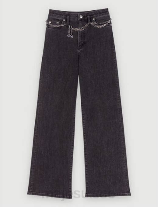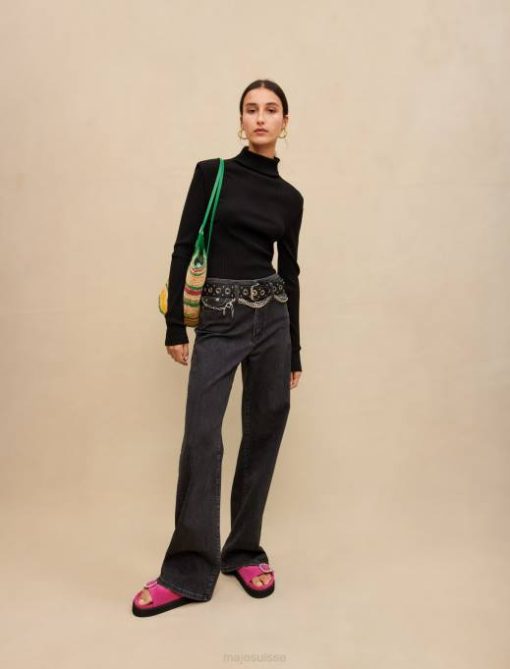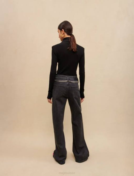 ce jean noir est un style intemporel dont vous avez besoin dans votre garde-robe. leur coupe oversize allonge la silhouette tout en assurant confort et style. Rehaussés d’une fine ceinture trèfle maje en chaîne argentée, ils s’associeront parfaitement à la veste assortie.