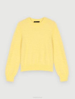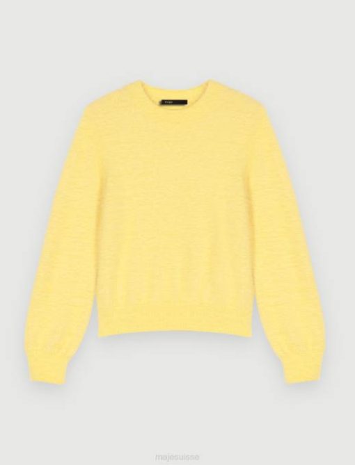 vêtements H604354 jaune femmes pull col rond duveteux Maje