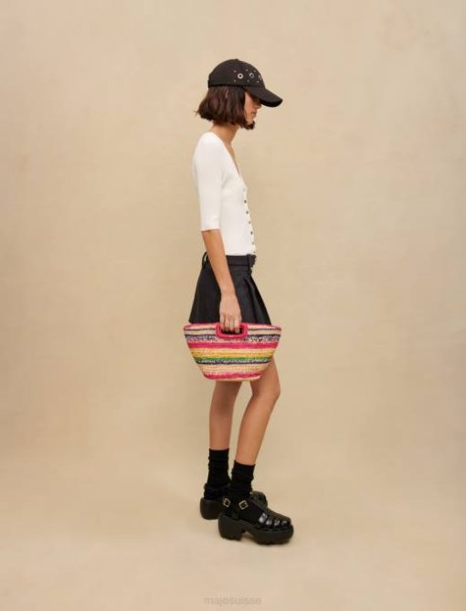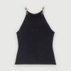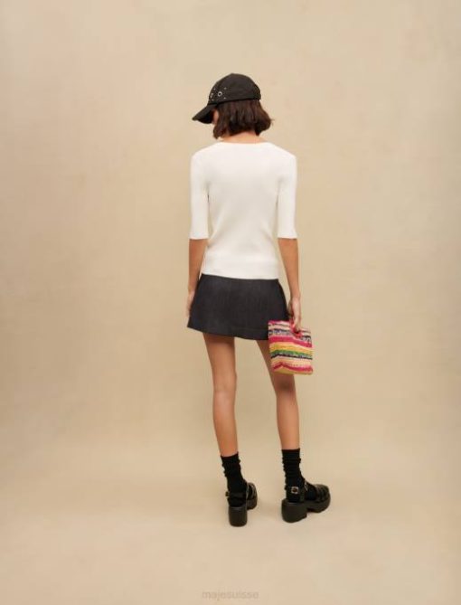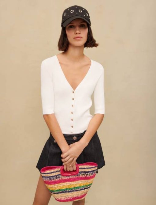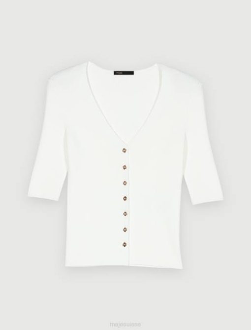 vêtements H604355 blanc femmes haut côtelé à col en V Maje