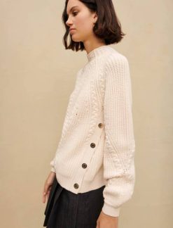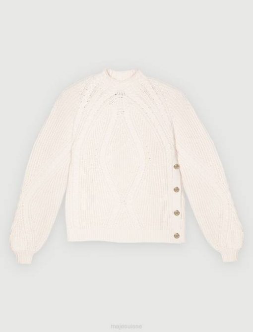 ce pull à col montant est confectionné dans un tricot tressé chaud et doux. les détails de boutons sur le côté de la taille ajoutent une touche de style supplémentaire. cette pièce est parfaite pour une journée au bureau.