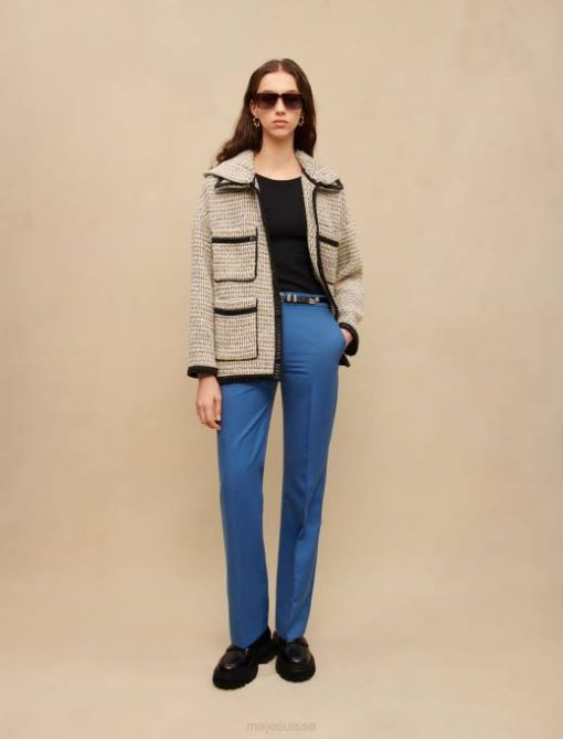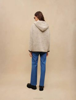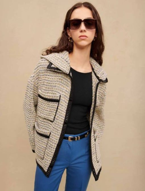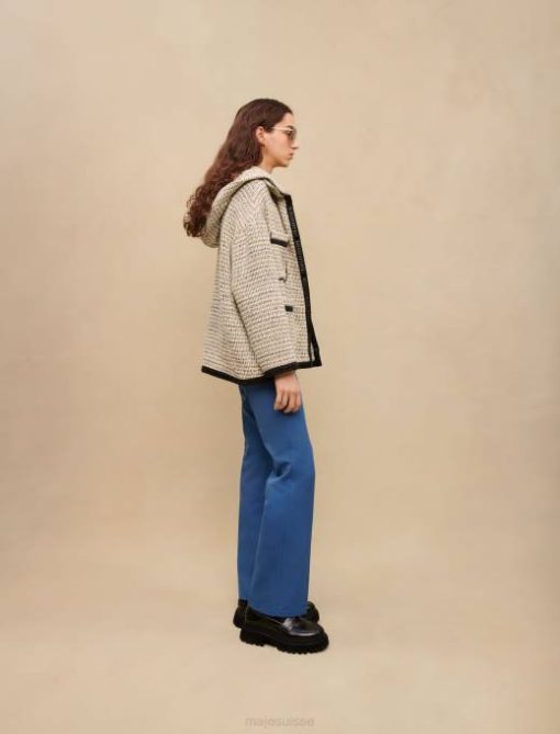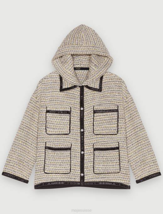 vêtements H604360 jaune femmes manteau à capuche en tweed Maje