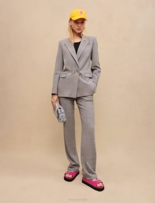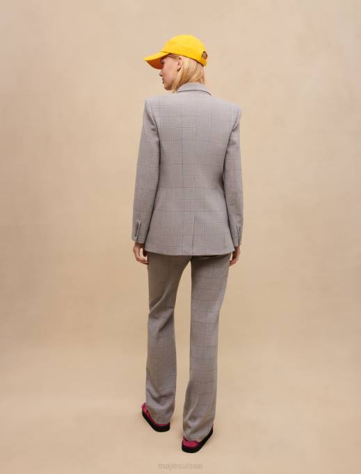 vêtements H604364 gris femmes veste ajustée à carreaux Maje
