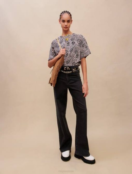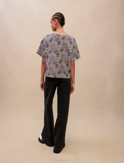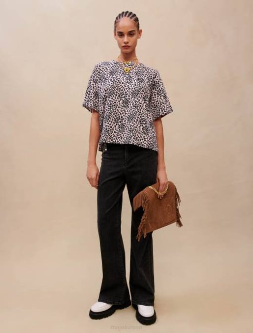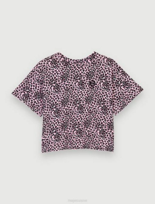 vêtements H604385 léopard rose clair femmes t-shirt en coton à imprimé léopard Maje