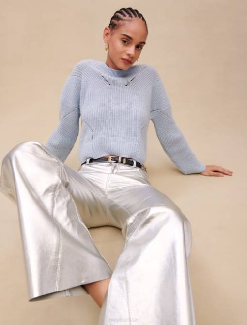 vêtements H604101 bleu femmes jean avec détails tressés Maje
