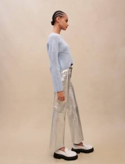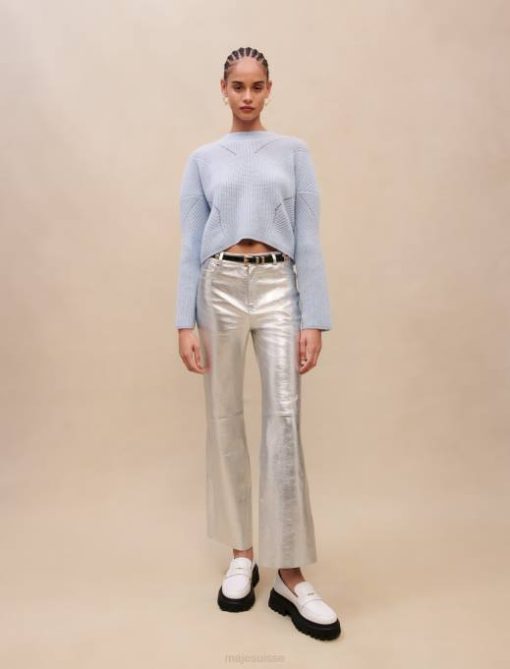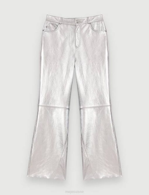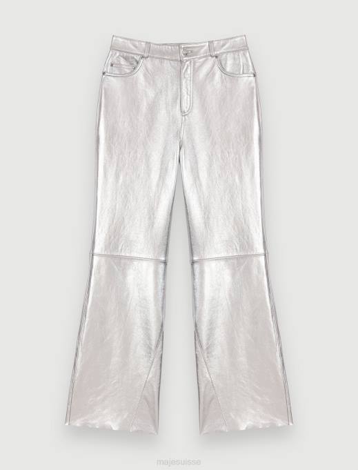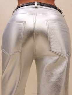 ce pantalon argenté est fabriqué en cuir véritable. leur coupe large et droite est conçue pour flatter votre silhouette. Très tendance, ils apporteront un peu de style à votre dressing.