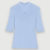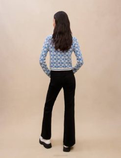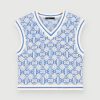 vêtements H60499 monogramme trèfle écru/bleu femmes pull court à imprimé monogrammé Maje