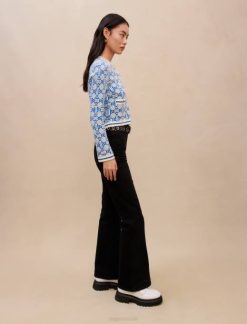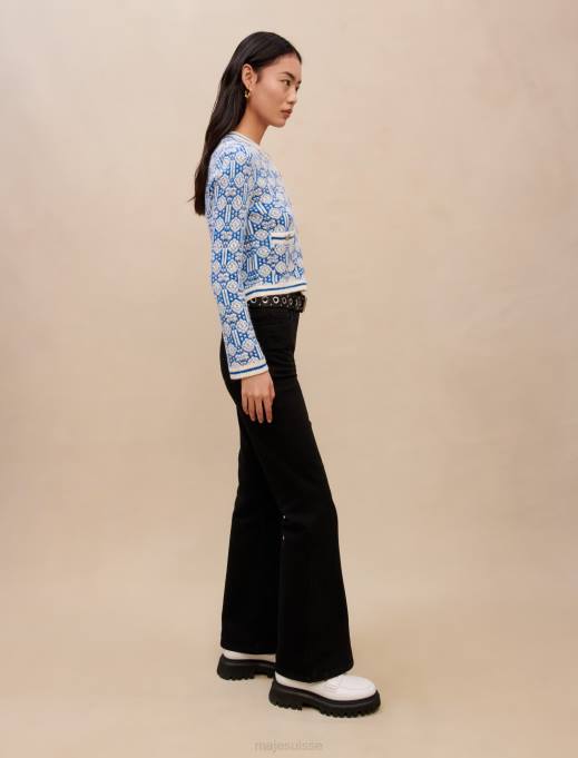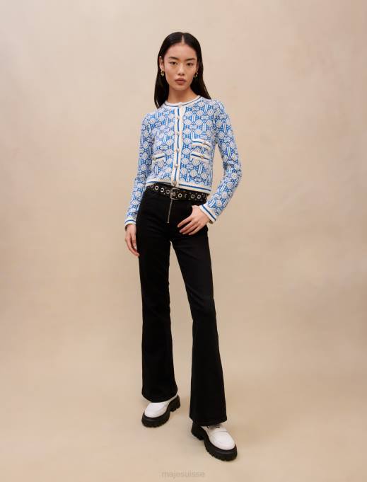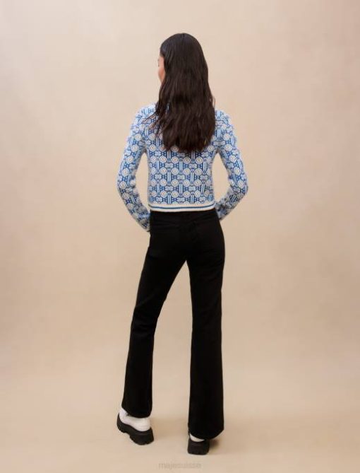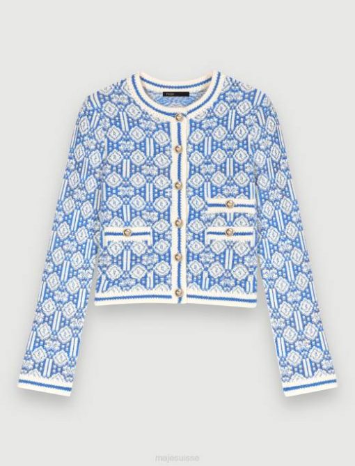 vêtements H60475 monogramme trèfle écru/bleu femmes cardigan avec maille monogramme Maje