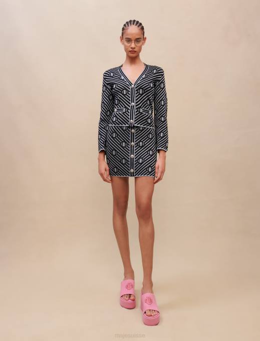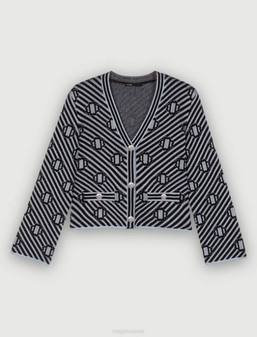 vêtements H60475 monogramme trèfle écru/bleu femmes cardigan avec maille monogramme Maje