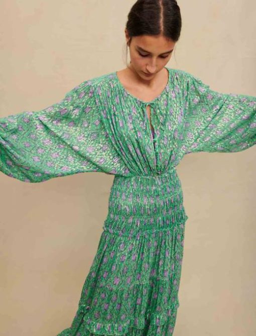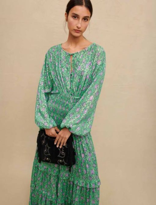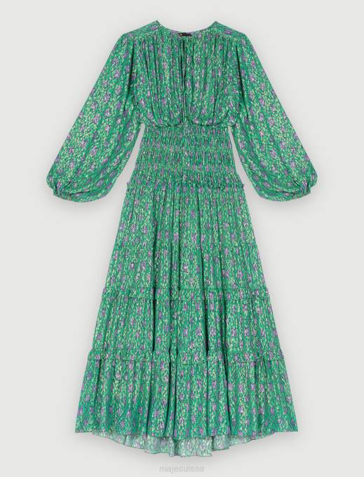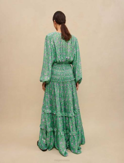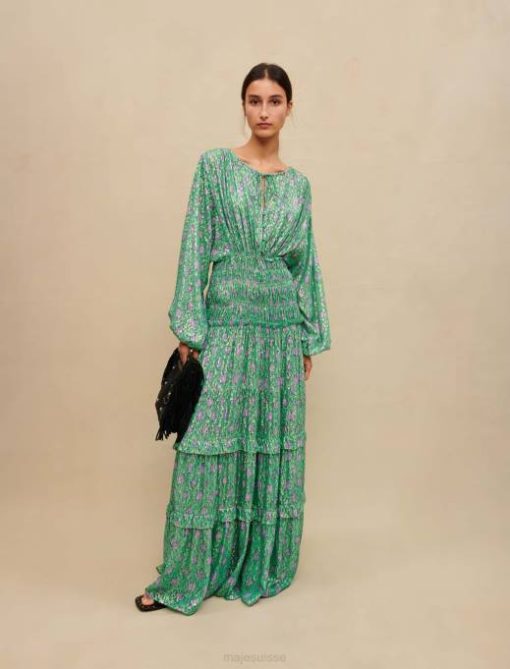 vêtements H604425 vert femmes robe longue métallisée Maje
