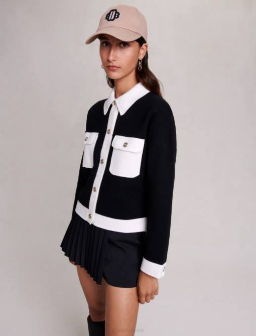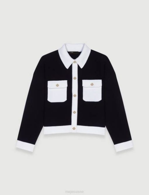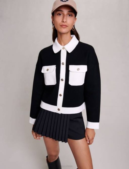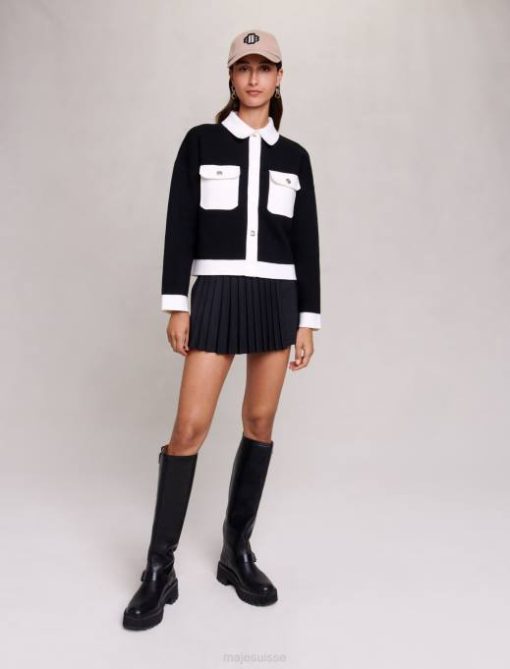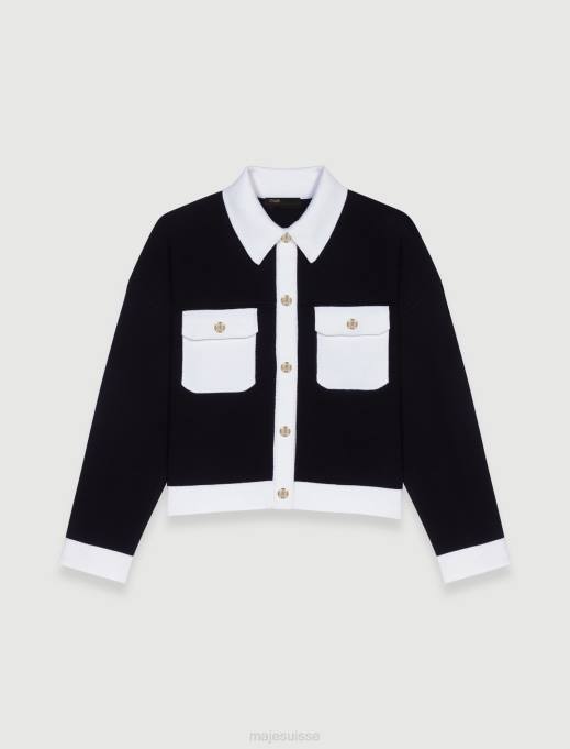 vêtements H604429 noir/écru femmes veste cardigan en tricot Maje