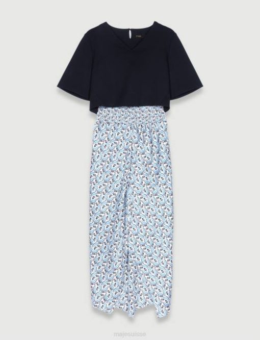 vêtements H604436 muguet écru/bleu femmes Robe fleurie 2 en 1 Maje