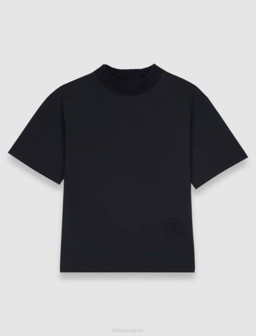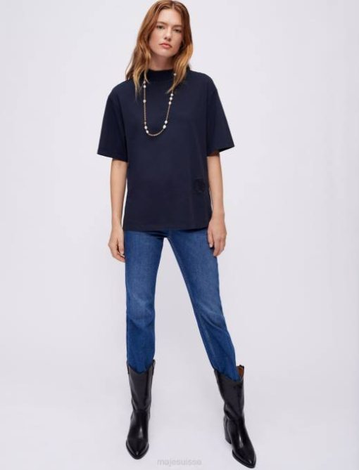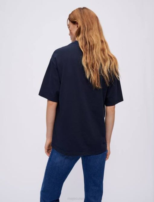 vêtements H604442 marine femmes t-shirt ample brodé Maje