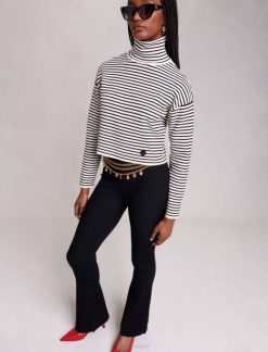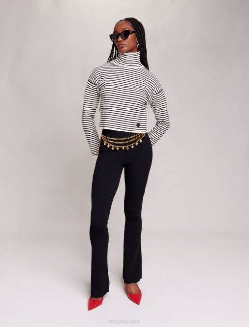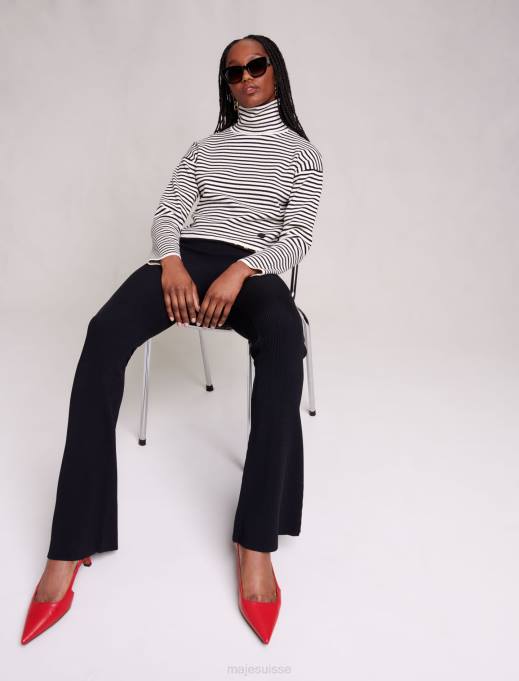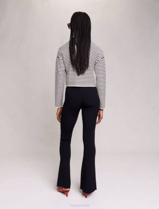 vêtements H60447 noir femmes pantalon en maille côtelée Maje