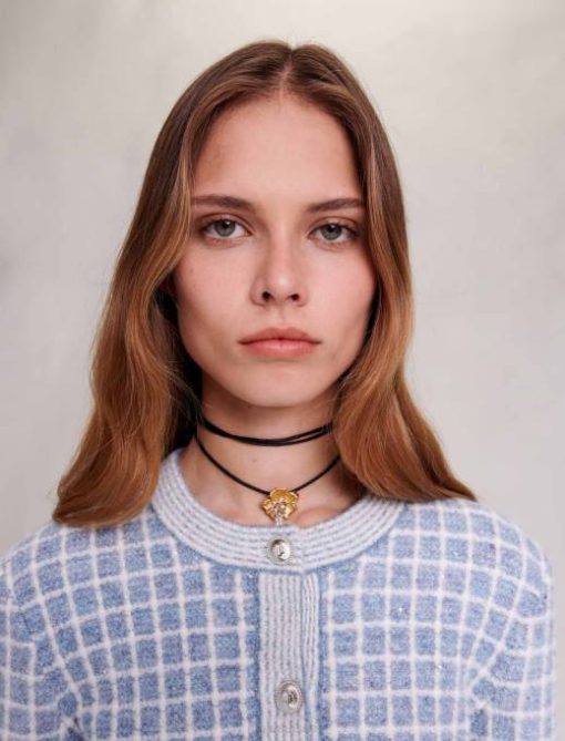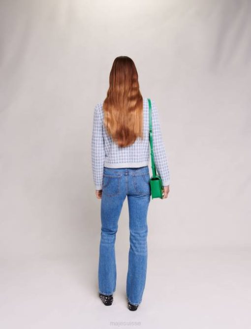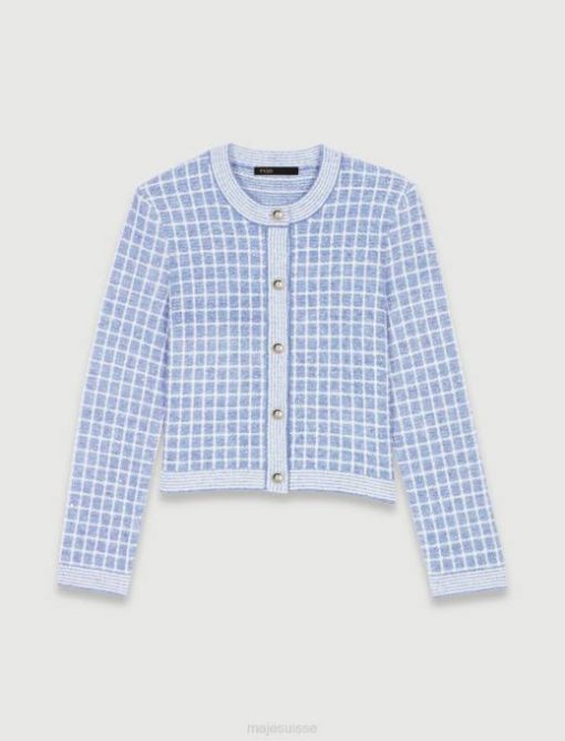 vêtements H60453 bleu femmes cardigan à carreaux Maje