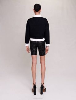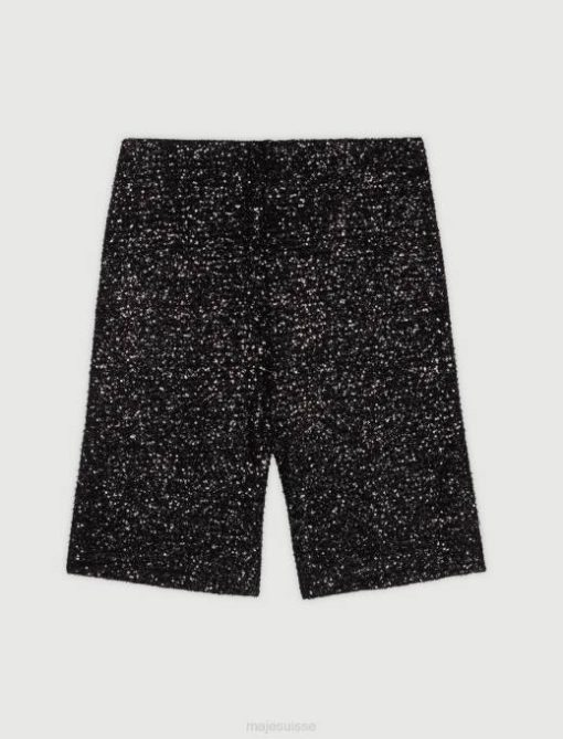 vêtements H60474 noir femmes short cycliste pailleté Maje