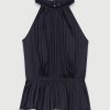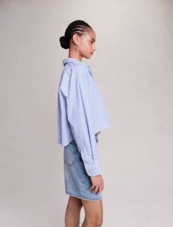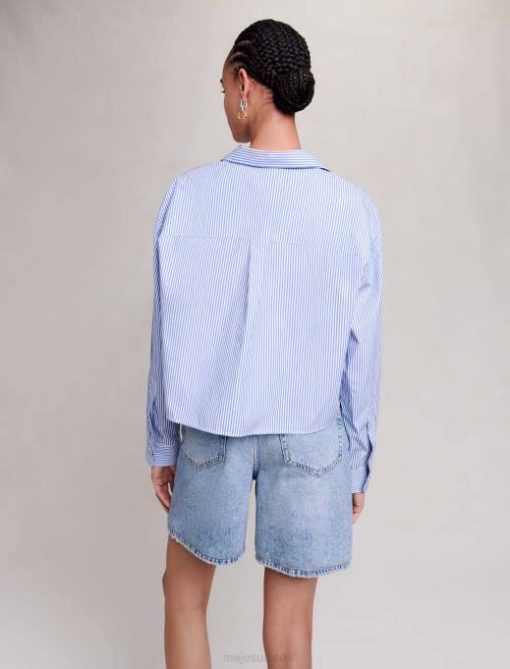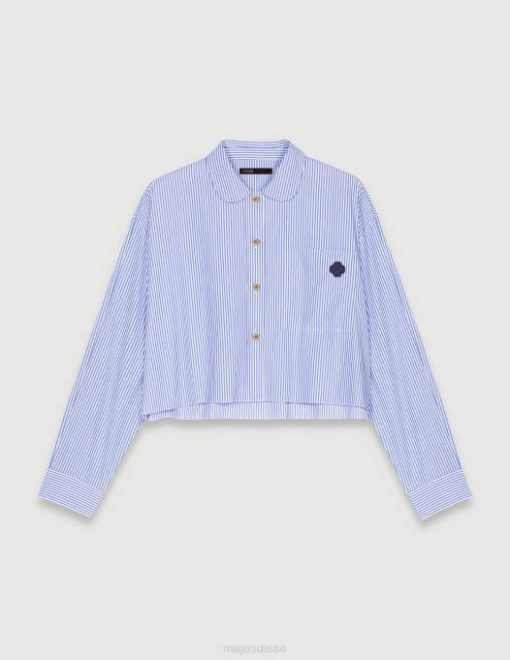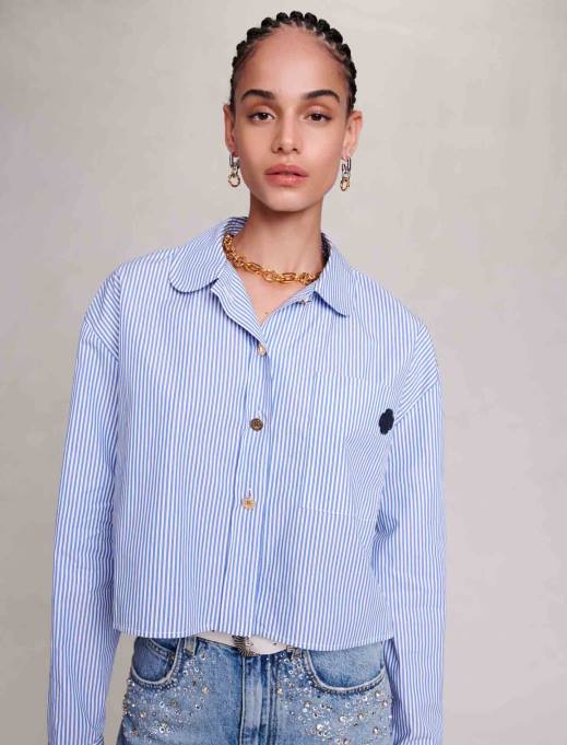 dans la nouvelle collection, le studio maje réinvente les classiques du vestiaire en y ajoutant une touche rock pour twister le look, comme cette chemise en coton aux volumes savamment retravaillés. Dotée d’un motif rayé all-over, cette chemise courte présente un ourlet plongeant au dos et possède des manches longues avec des poignets plus serrés, une fermeture boutonnée ajourée et un col claudine. le petit détail qu’on adore un logo trèfle emblématique brodé sur la poche plaquée poitrine.