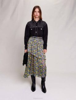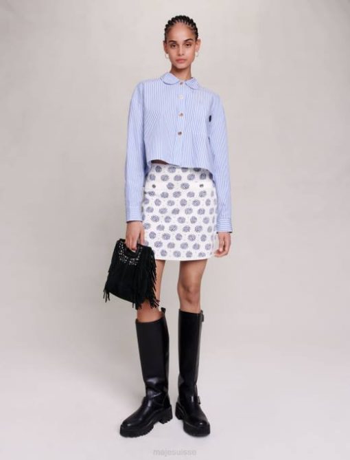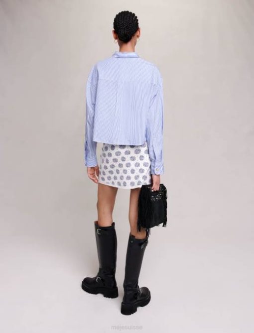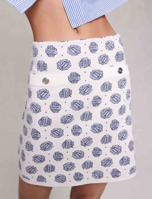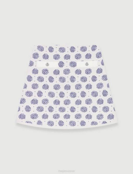 vêtements H60488 monogramme trèfle écru/bleu femmes jupe en maille à monogramme Maje