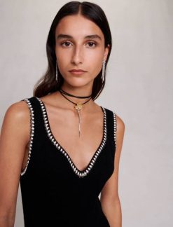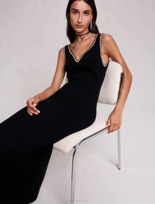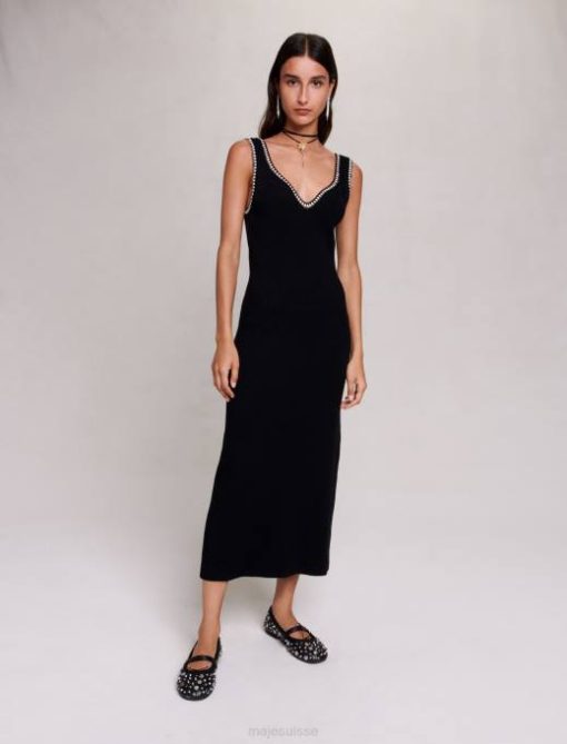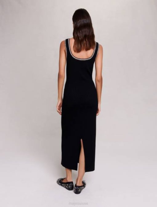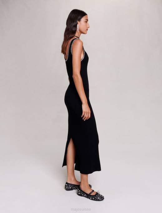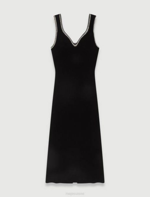 vêtements H60490 noir femmes robe longue en tricot Maje