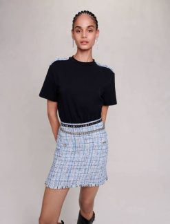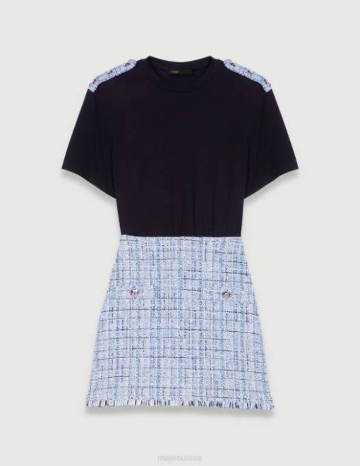 vêtements H60494 bleu clair femmes robe en tweed Maje